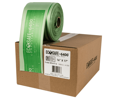 The EcoSafe® 16×17″ compostable liner bags are the best option for residential users. Made to fit the kitchen caddy (and other comparable bins) snugly for easy and clean food scraps collection.