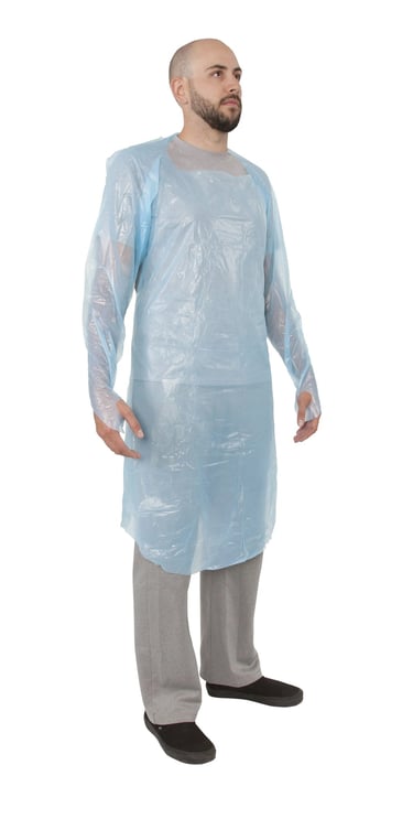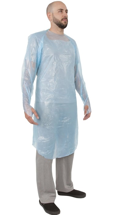 CPE Gowns are made of cast polyethylene for strong full body coverage.