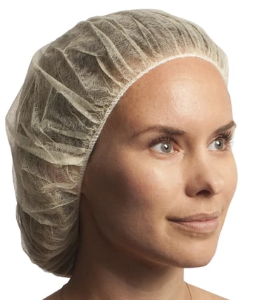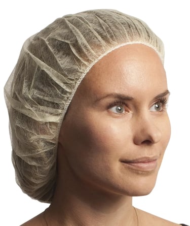 Breathable nonwoven polypropylene bouffant caps in a yellow colour.