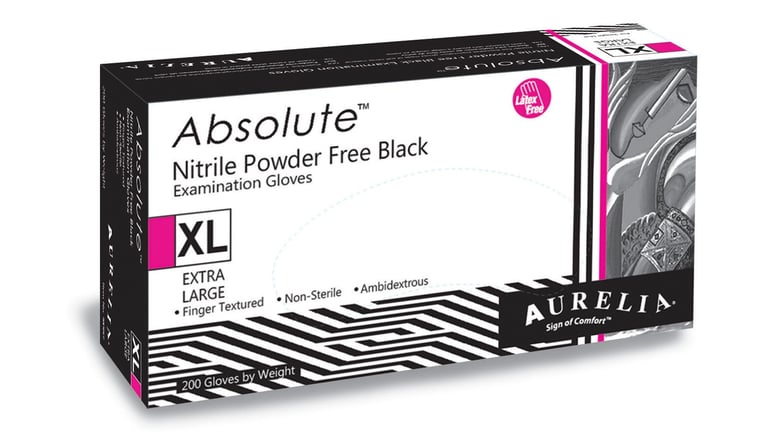 Our Absolute® black nitrile gloves are designed for all-day comfort & exceptional ergonomics. With a unique texture, superior tactile feel, and a high-contrast satin black finish, this glove offers enhanced grip and control. Perfect for light to medium applications, notably within the food service industry, these powder-free gloves provide high finger sensitivity...
