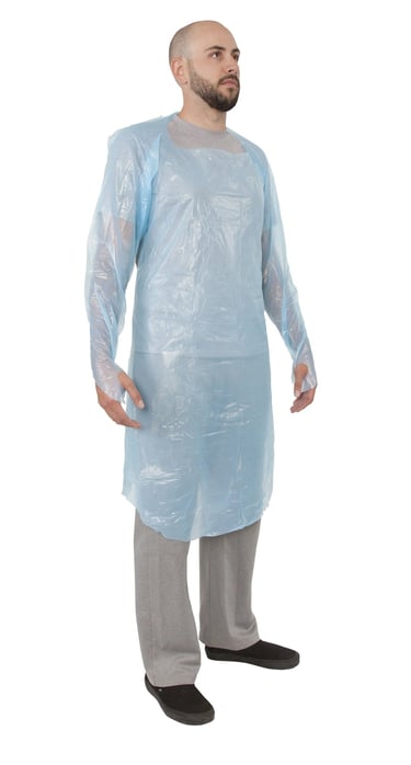 CPE Gowns are made of cast polyethylene for strong full body coverage.